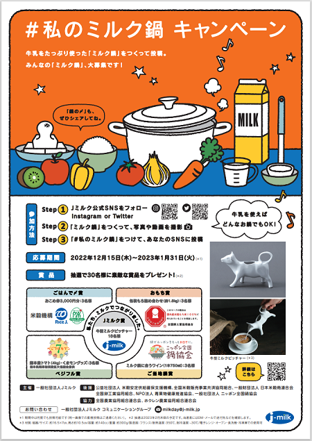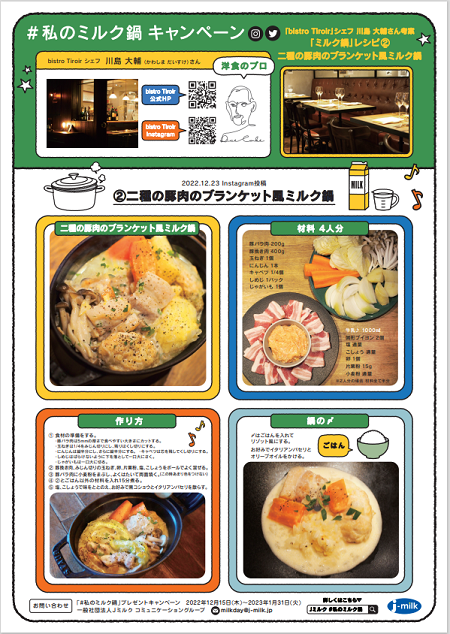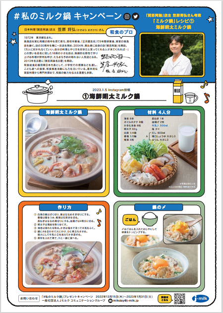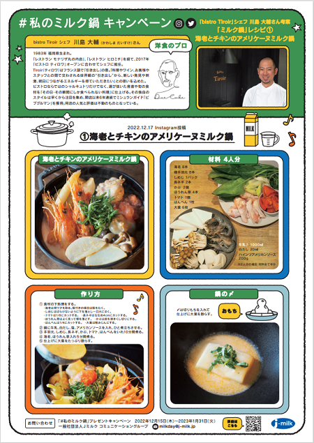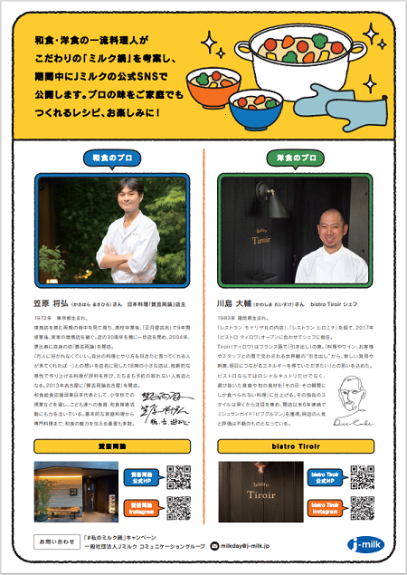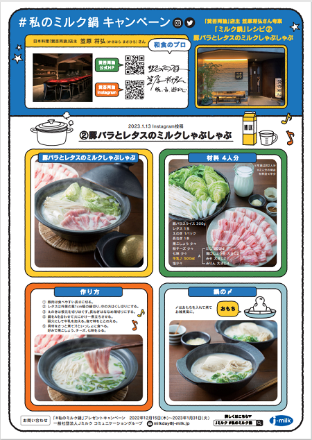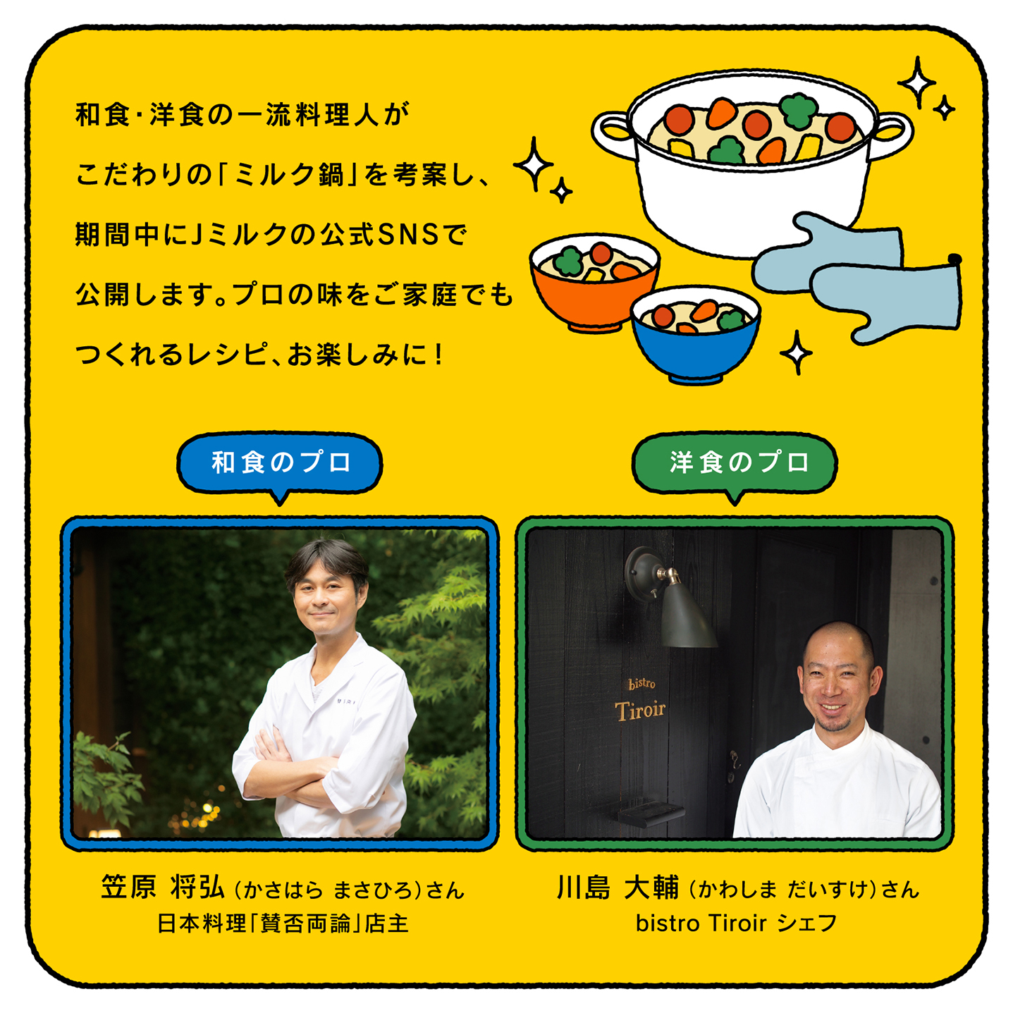和食・洋食の一流料理人がこだわりの「ミルク鍋」を考案中。ぜひこのキャンペーン、ご活用・ご参加ください😊