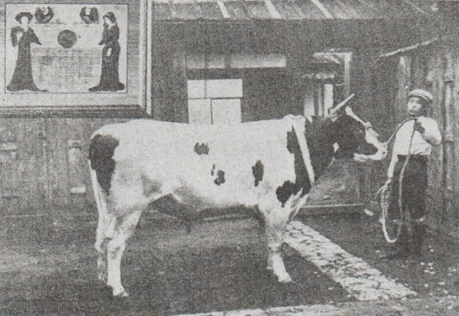 なお、この輸入は国立畜産試験場の設立3年前に当たります。明治政府は、当初、洋牛としてショートホーン種やエアシャー種などの英国原産の乳肉兼用種を多く輸入していましたが、明治中期ごろからは、米国から乳専用種のホルスタイン種の輸入が牛乳搾取業者によって盛んになりました。政府によるホルスタイン種の推奨は明治末になってからですので、日本における乳牛改良は、このように民間主体で進められたともいえます。