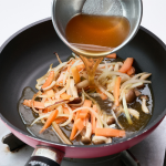 玉ねぎは薄切りにする。しめじは石づきを取り除き、小房にする。にんじんは短冊切りにする。